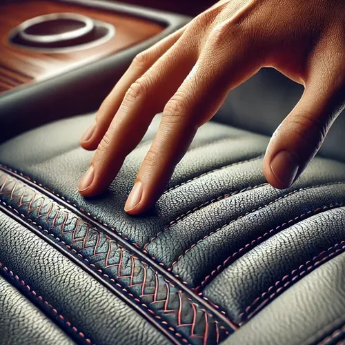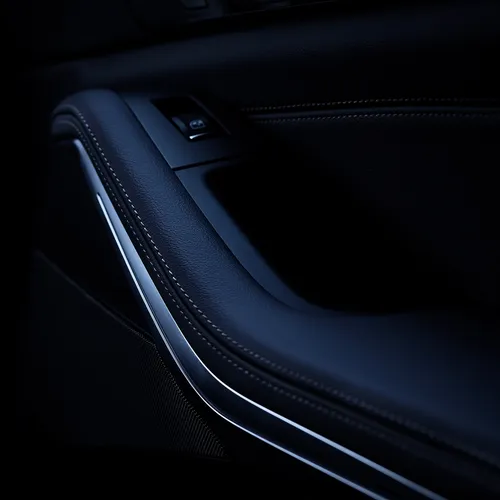 Leather-laminated door panel with contrasting decorative stitching and chrome-plated handle.