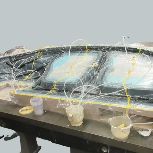 Vacuum infusion, also known as the Resin Infusion Process or VARTM (Vacuum Assisted Resin Transfer Molding), is a modern manufacturing method for producing lightweight yet highly durable fiber-reinforced composite parts made of fiberglass or carbon fiber. In this process, dry fiber layers are placed into a mold, sealed airtight with a vacuum bag, and then infused with low-viscosity resin under vacuum pressure. The controlled resin flow ensures parts with a very high fiber content, low porosity, and excellent mechanical properties.
