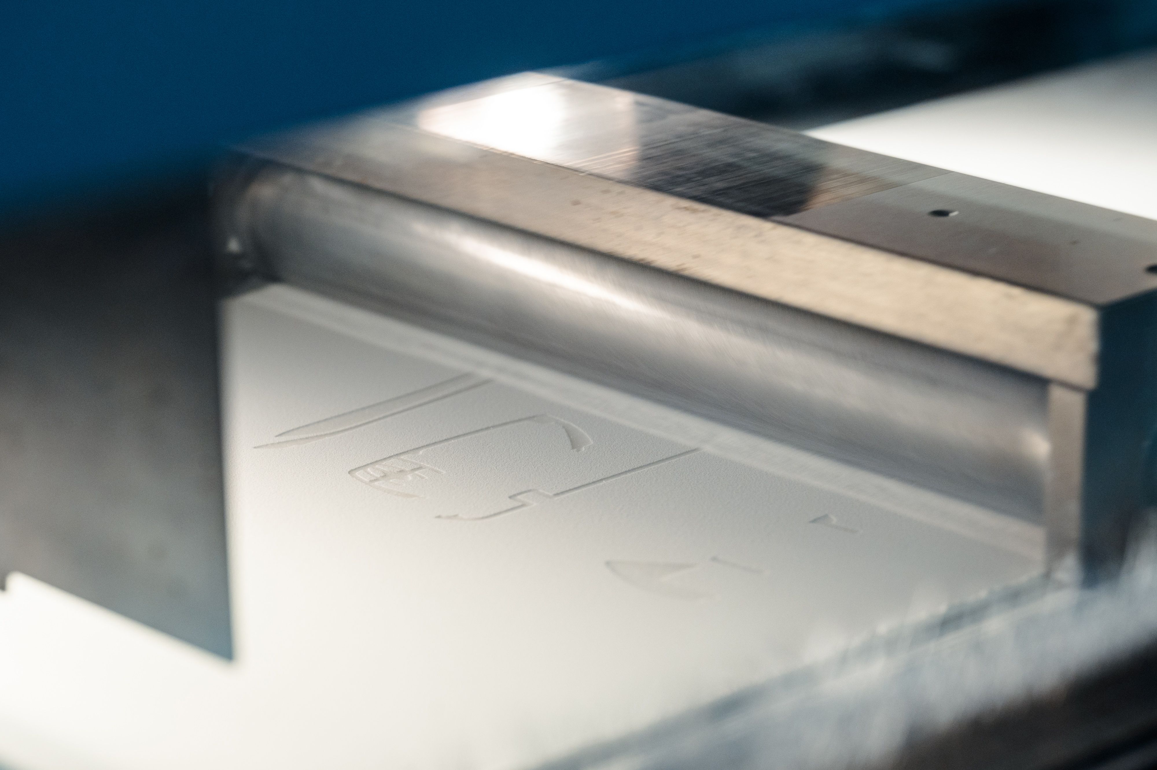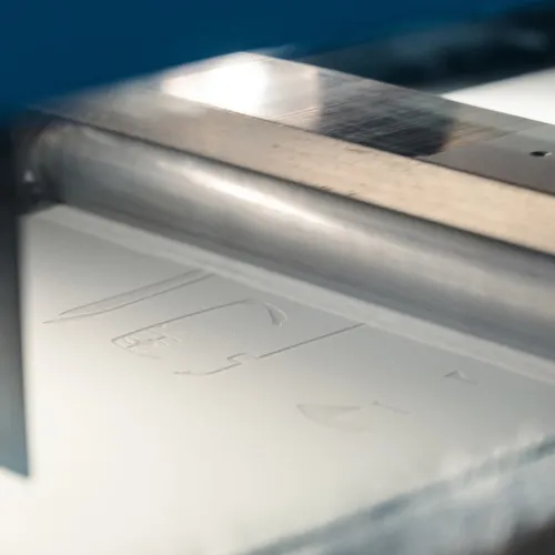 First, a thin layer of the desired material—often polyamide (nylon), but also TPU or various metals—is evenly applied to the build platform. The material is spread precisely using a recoater blade.